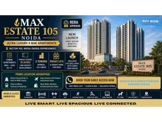 Max Estate 105 Noida Sector 105 is a premium residential development featuring spacious 4 BHK apartments with efficient layouts, natural light, and modern interiors. The project includes high-rise towers with advanced amenities and green surroundings.